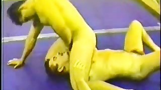 Mixed Wrestling Blonde MILF teaches Younger hunk how to grapple